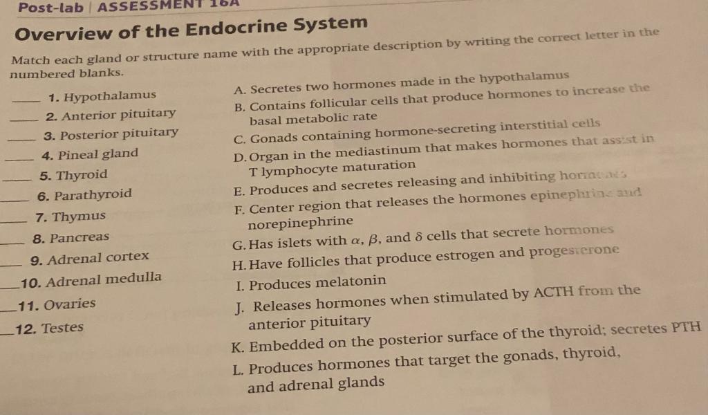 Solved Match Each Of The Following Hormones With The Chegg Com