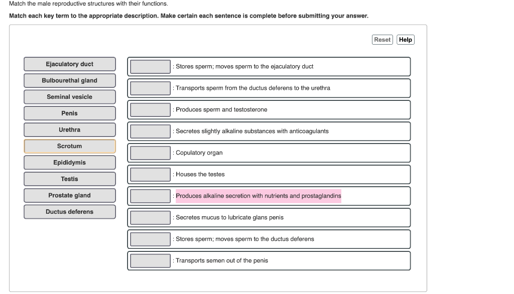 Solved Match The Male Reproductive Structures With Their Chegg Com